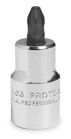 Stanley J5403 Proto 1/2-inch Drive Phillips Screwdriver Bit Socket - No. 3 Bit holders have a hex opening to hold the bit allowing the bit holder to take the full load of torque. Made of heat-treated alloy steel. Polished chrome finish. 1/2-inch Drive Phillips Screwdriver Bit Sockets No.3 Tip Size.