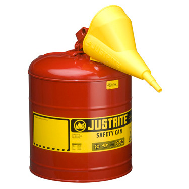 Made from high-grade coated steel, each can is tested to guarantee 100% leakproof construction. The tough powder-coat finish resists chemicals and stands up to demands of rigorous use. Each Justrite safety can is equipped with a stainless steel flame arrester which dissipates heat to stop flashback ignition. Cans up to 1 quart (1 L) feature a trigger-release handle, while larger capacities have a swinging handle to greatly ease carrying of heavier loads. Large label ID zone on swing-handle cans provides writing space to identity contents, department location, or individual user name.