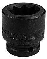 Stanley J07512S Proto 3/4-inch Drive Impact Socket 3/4-inch - 8 Point Proto 8 Point Impact Sockets are ideal for use on stubborn or damaged fasteners and also on fasteners made from soft materials. The Torque Plus design is a high performance drive configuration which allows for quick and easy socket engagement to the fastener flats, not the corners. The Torque Plus configuration employs a radius-corner design, shifting contact area and stress away from the fastener corners and distributing contact stresses over a large area of the socket, minimizing slippage. The Torque Plus internal design minimizes fastener rounding, helps to extend fastener life and allows the user to more easily turn worn, rounded, or rusted fasteners. Drive end chamfer and four detents help provide quick positive engagement with drive tool on any of the socket drive walls.