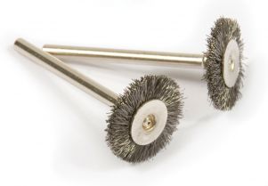 WIRE BRUSH, STEEL SET, 1" (2-PIECE) USED FOR A WIDE VARIETY OF CLEANING AND SURFACE PREPARATION TASKS ON MANY SURFACES. 1/8" SHANK FITS ALL NAME BRAND ROTARY TOOLS.