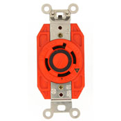 ORANGE FLUSH MOUNTING LOCKING RECEPTACLE, 30 AMP, 600V 3 PHASE, NEMA L17-30R, 3P, 4W, INDUSTRIAL GRADE, GROUNDING